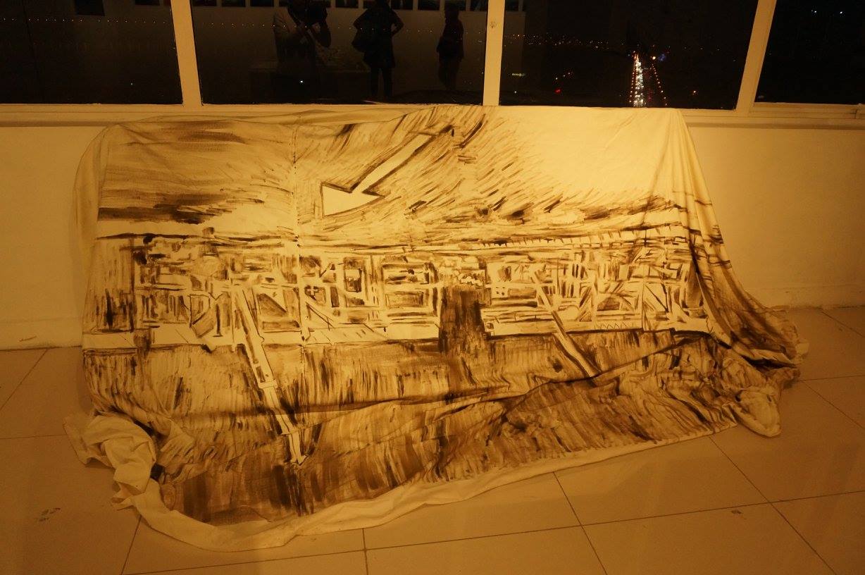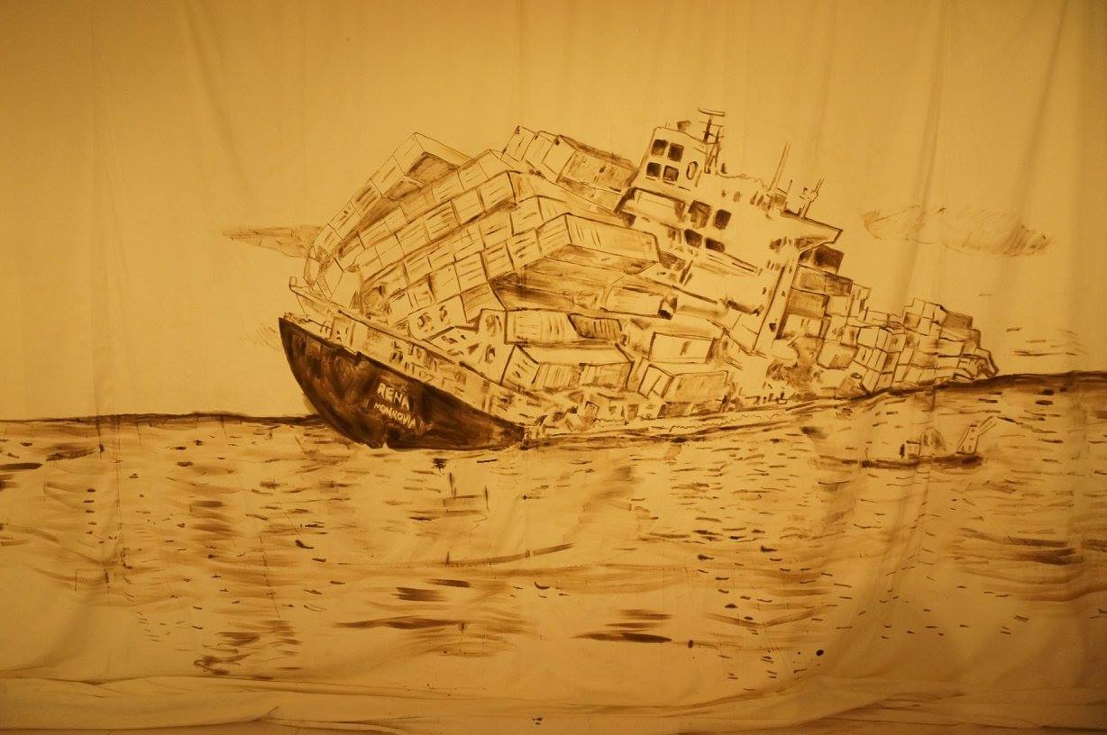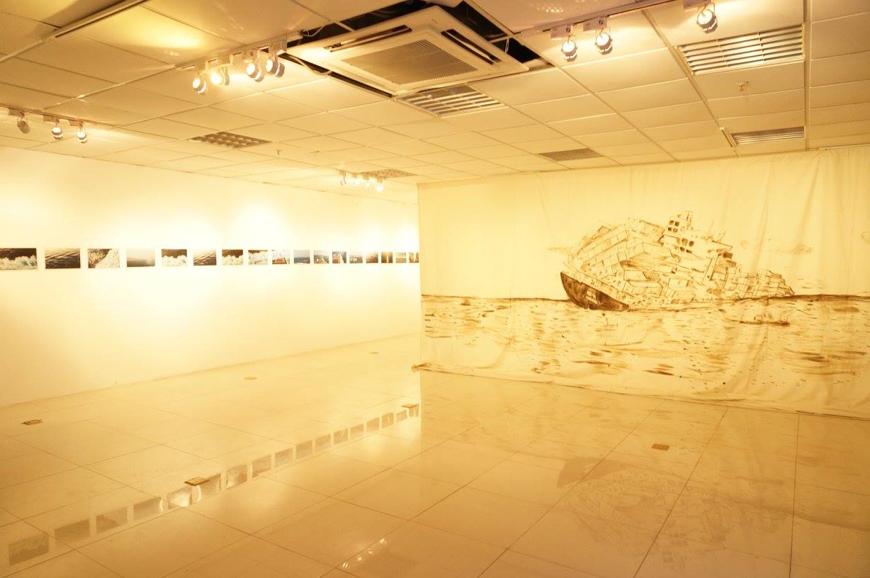 ĐI XUYÊN // CROSSING includes some new paintings in heavy crude oil from the ship’s engine, photographs, video and sculptural work made during and after the crossing.