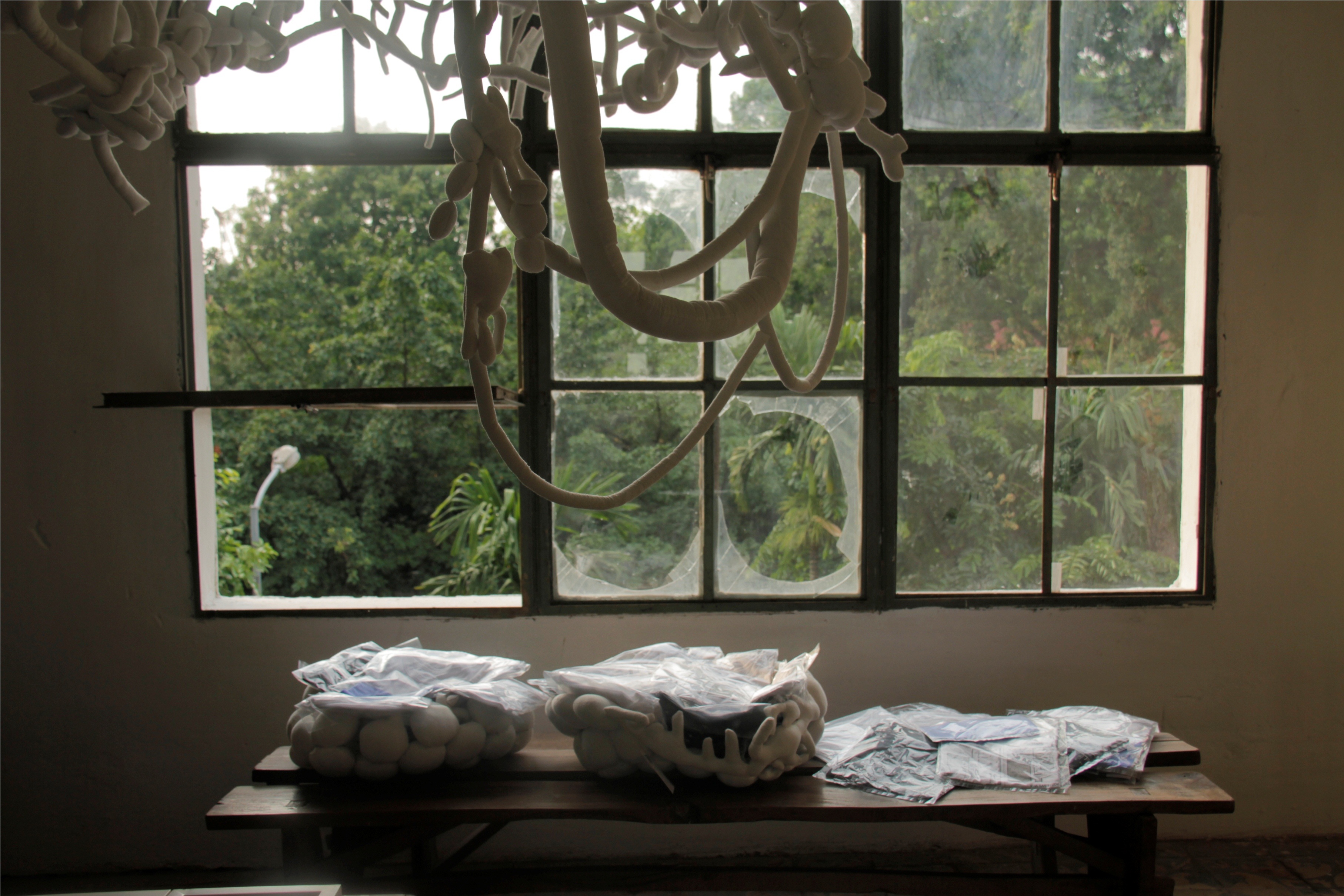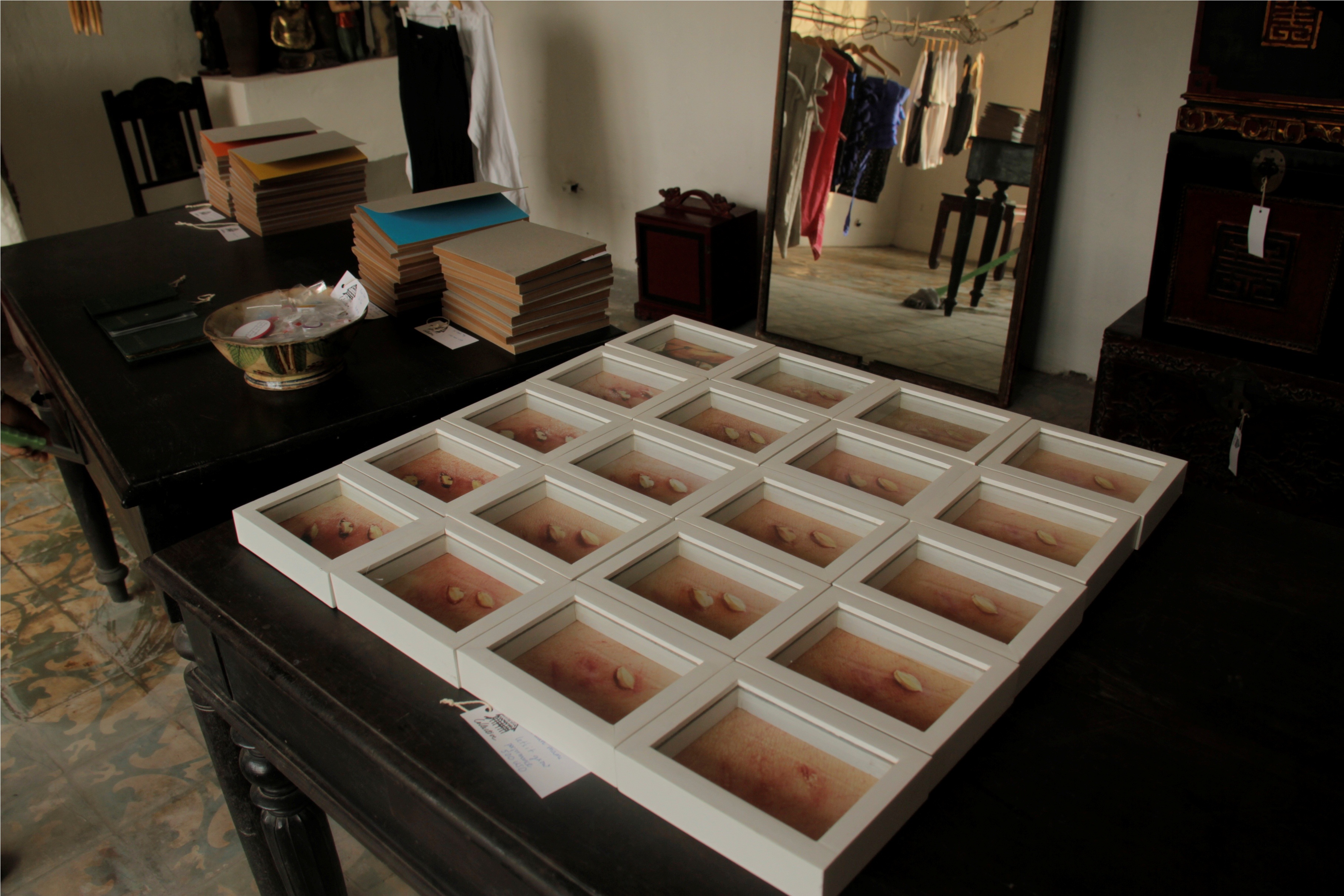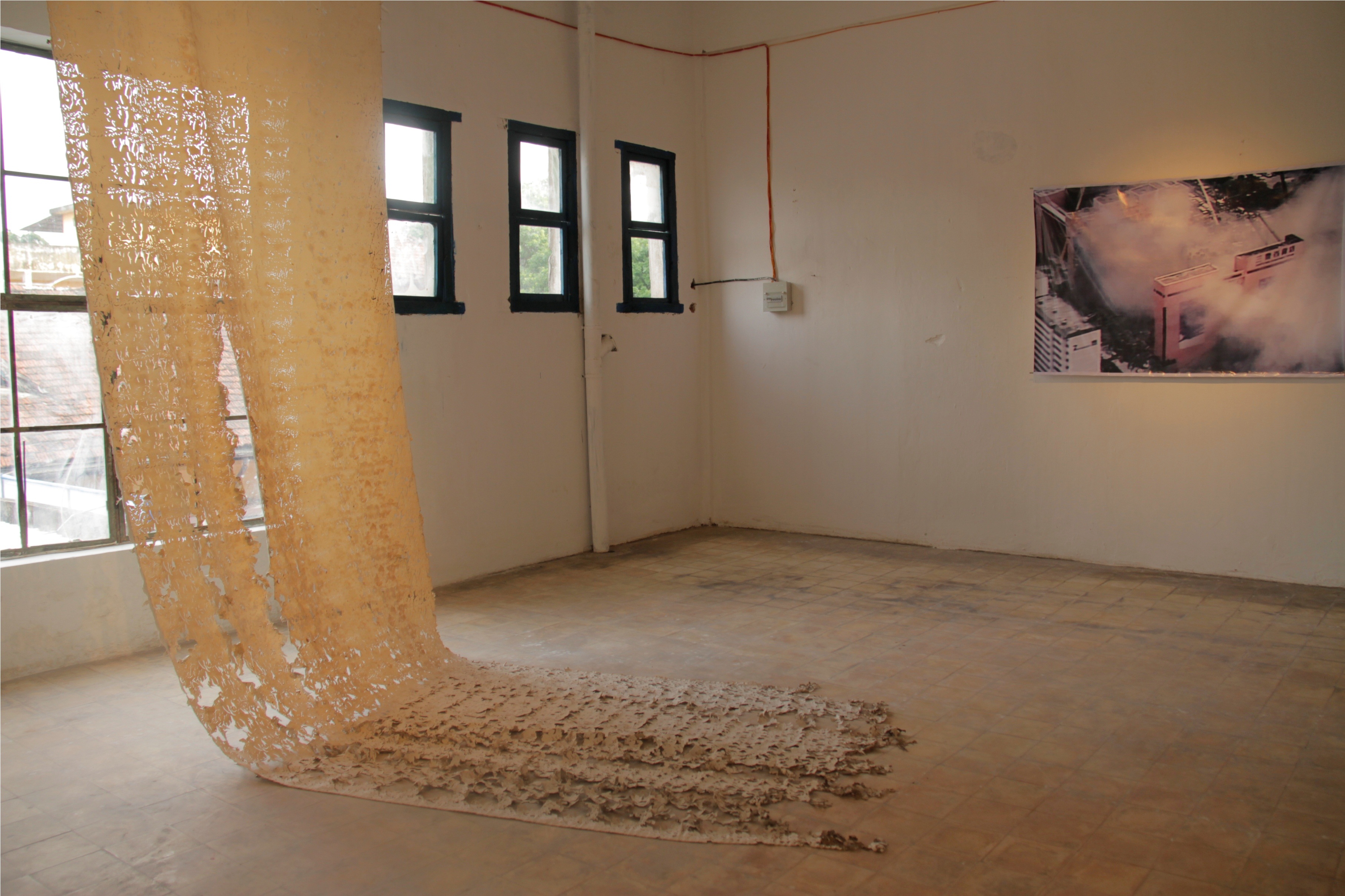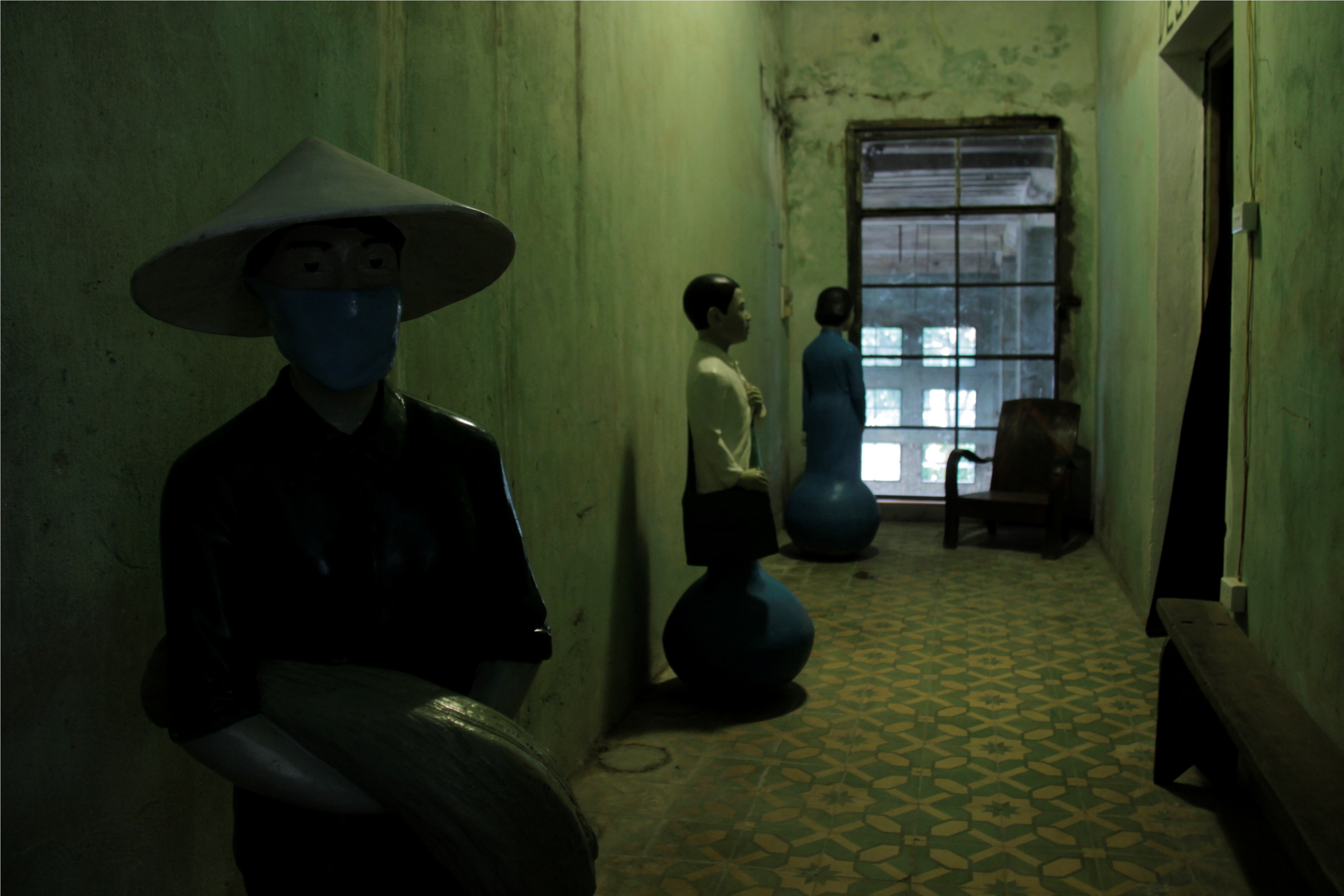 Destruo marks the opening of Nha San Collective, an alternative artist run space in Hanoi. Destruo in Latin can be understood as destruction, devastation or ruin. It is a concept that relates closely to the context of the building where Nha San Collective locates. The industrial complex used to be a medicine factory with different buildings built by the French, Soviet and Chinese. Destruo features artworks by artists from HCMC, Iran, Korea and Hanoi. Hyoungsang Yoo’s photographic works recapture stills from television news, and explore the ambiguous contour between fact and fiction. Anahita is an Iranian filmmaker who continues the tradition of Iranian cinema on the topic of children, with a unique view on gender, gender identity and queerness of children in their prepubescent period. Anahita’s short film “Needle” has won the Cinéfondation award at the 2013 Cannes festival. Questioning the gaps and grey area in social structures, Thao Nguyen Phan’s video installation is an investigation which takes place in a semi-conscious state and via the repetitions of a single gesture. Cong Tung quietly explores the medium of painting. He uses external and natural elements like insects for a long duration to both destroy and deconstruct the surface of the canvas. Appendix Group, the first performance art group in Vietnam, continues with their interest in “Somniloquy”, or “Sleep Talking”, in which simple gestures can carry deep thoughts about tradition, history and modernity.