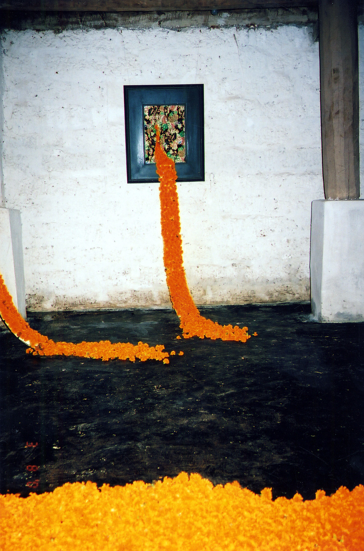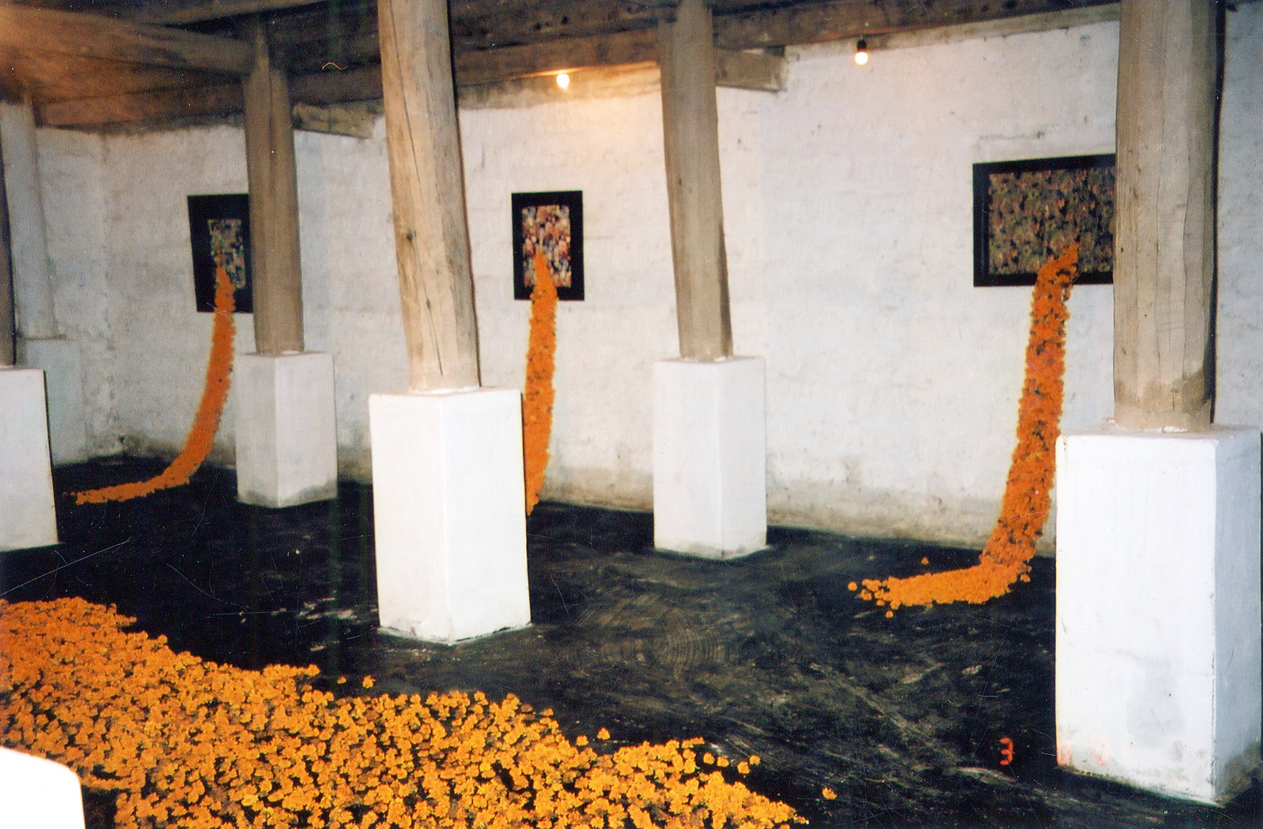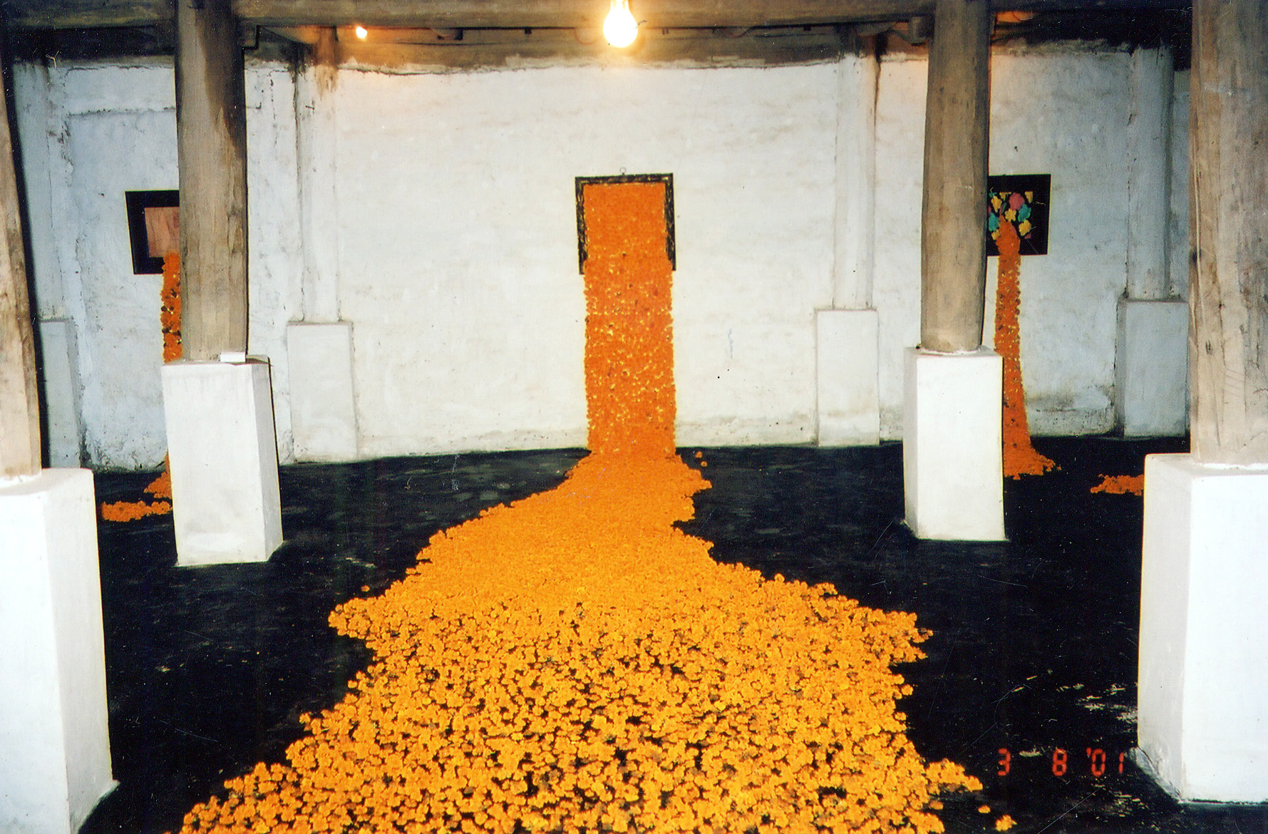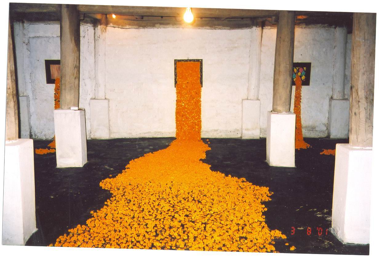 In Duong's works, he used yellow flowers as a main material for this installation.