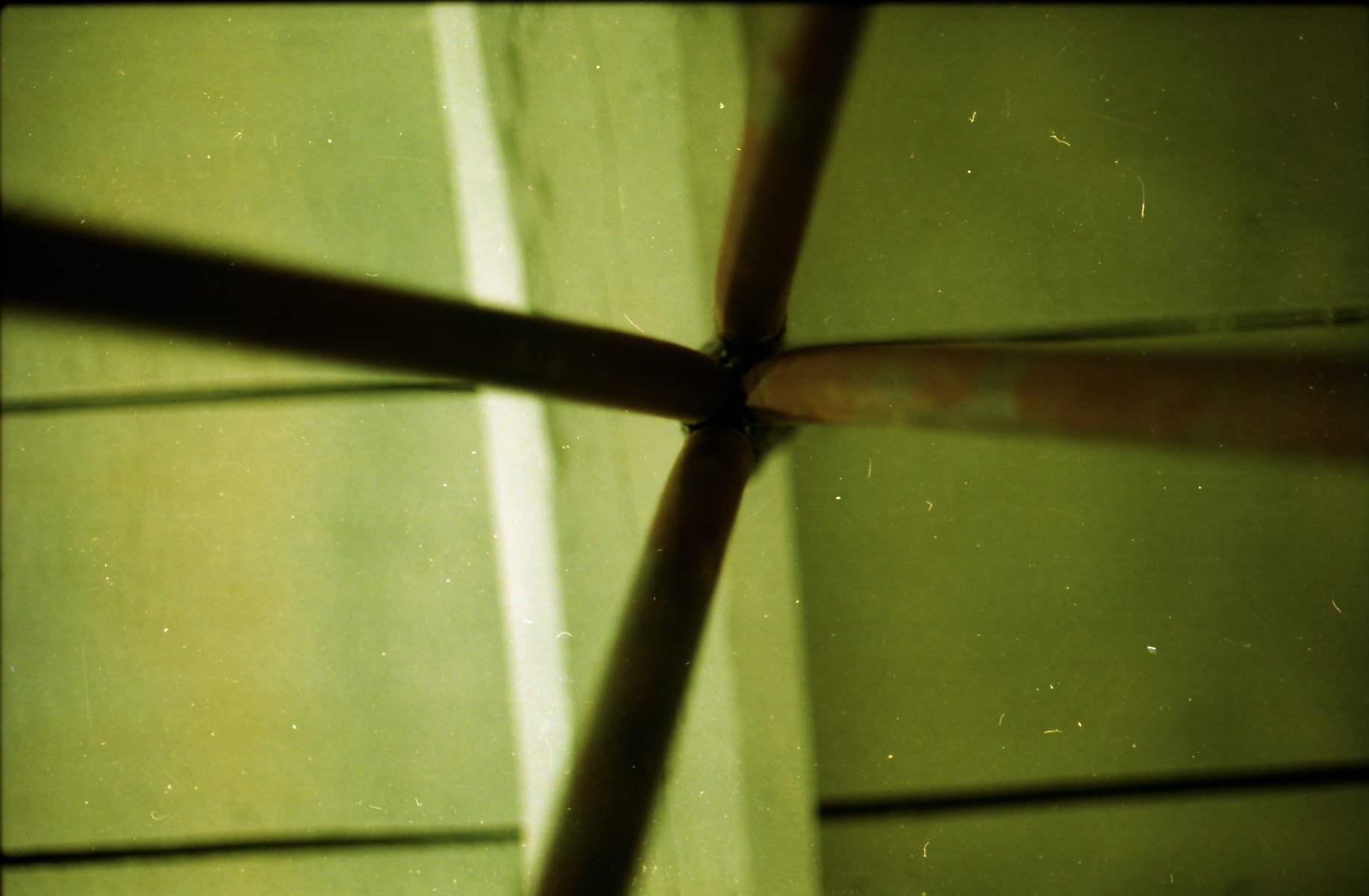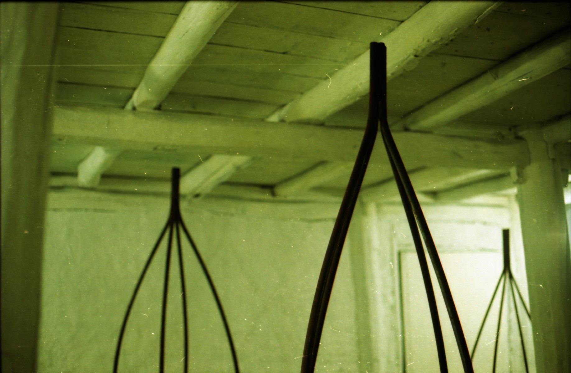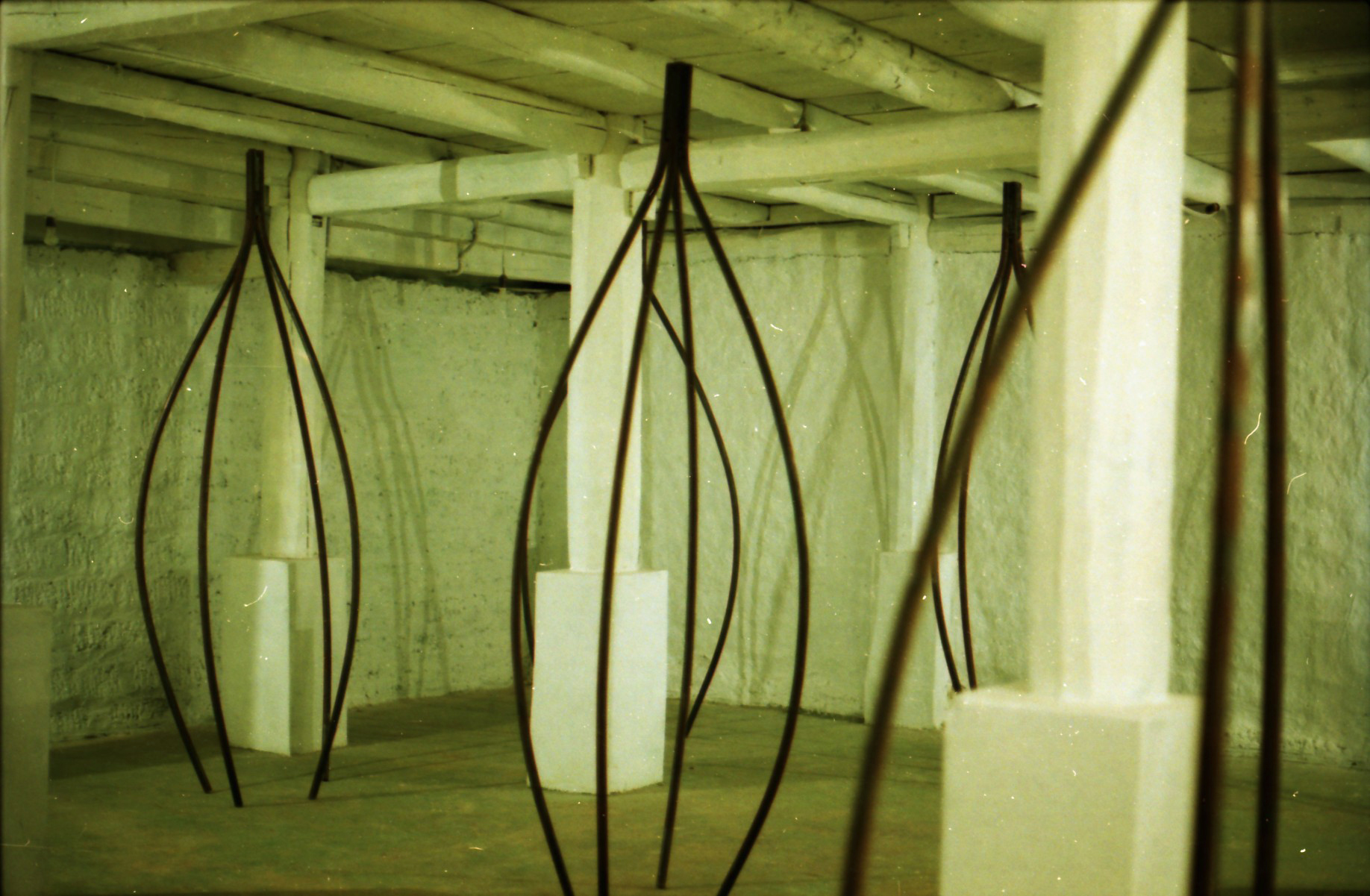 Lam's works are made from bamboo. The Title of installation with bamboo, metal is: "Construction"