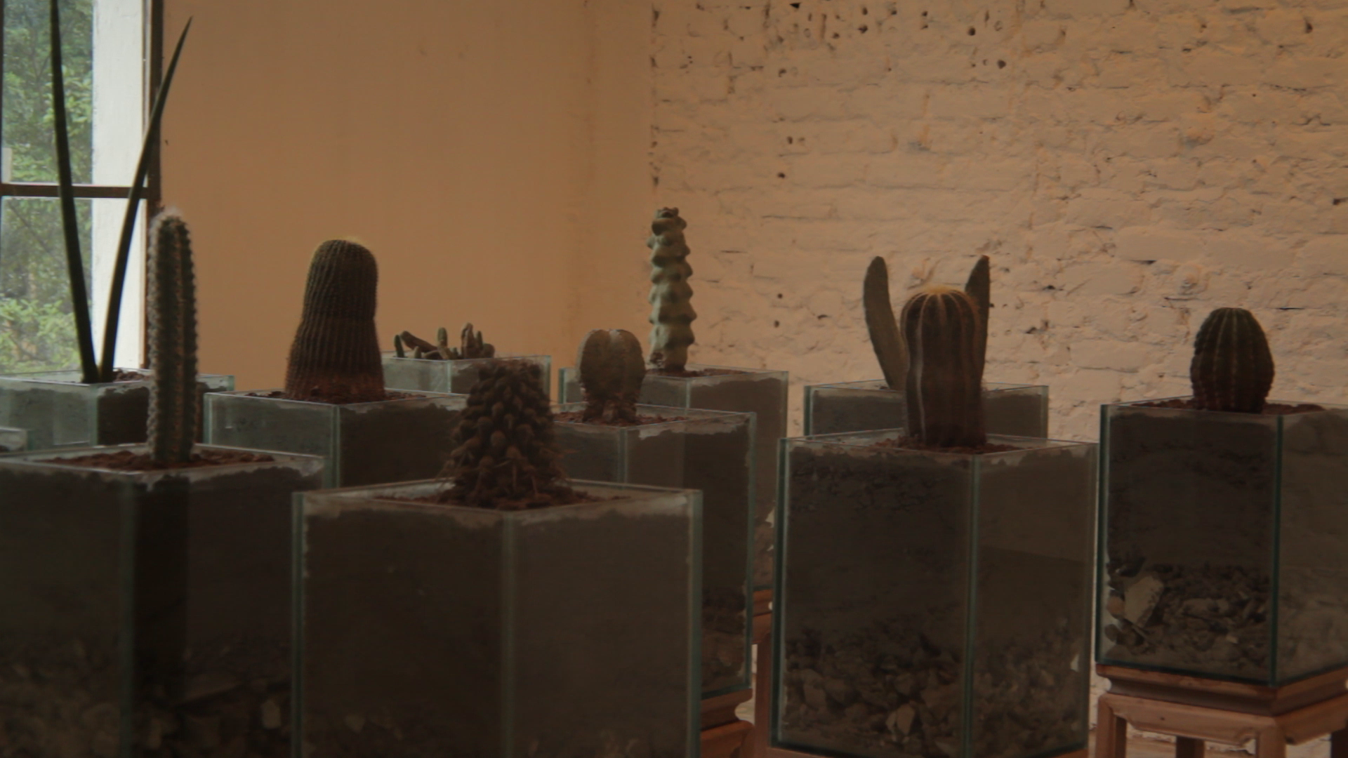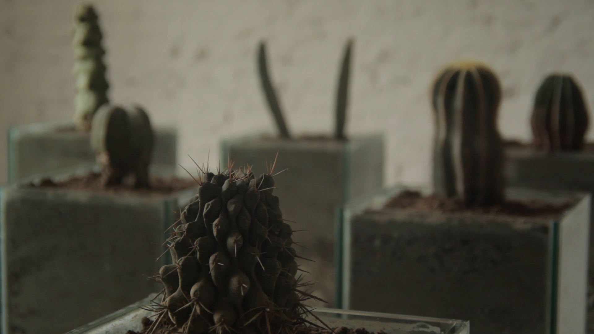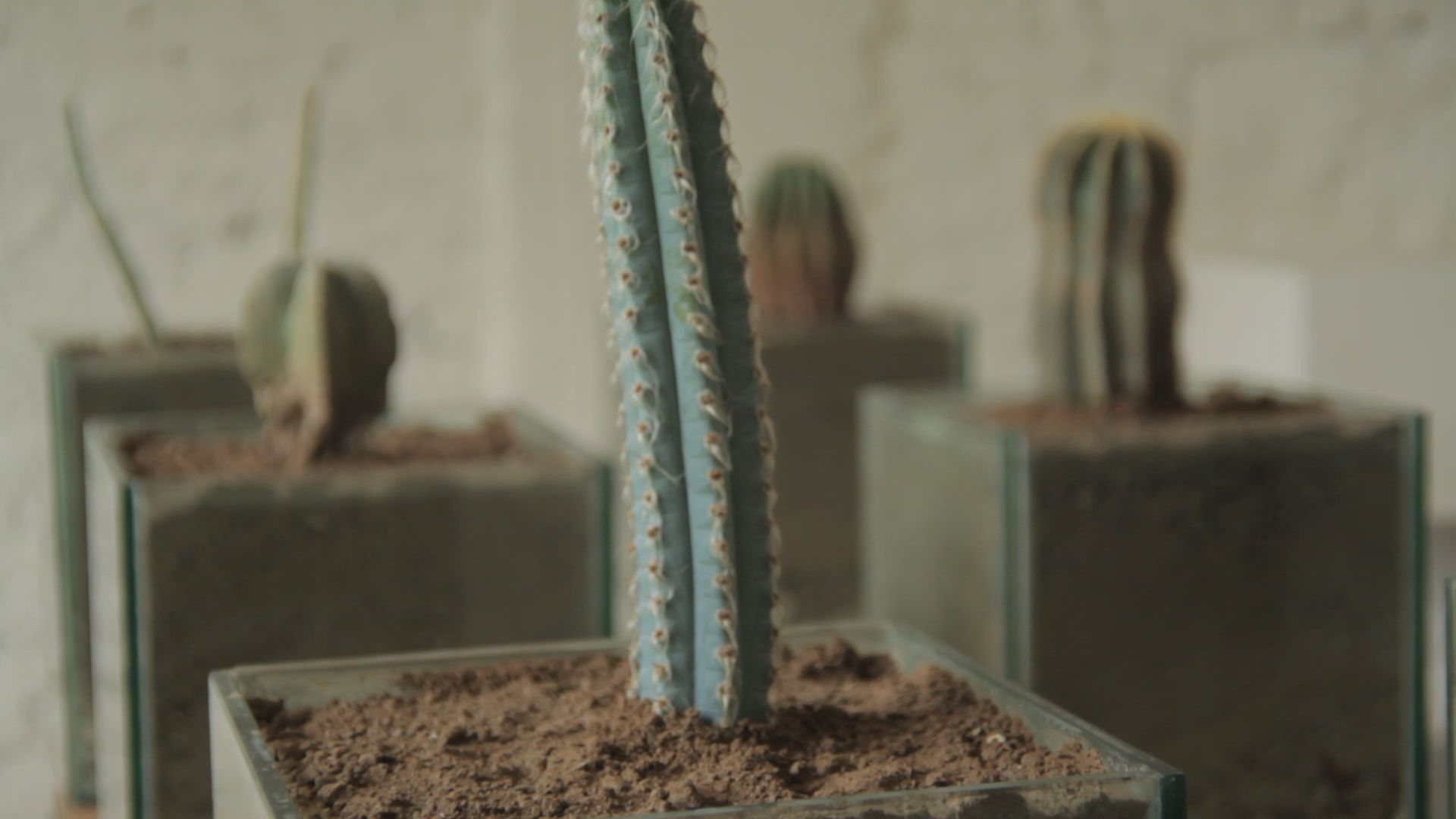 . Material: Wall mortar from Room 1; Glass from “Utopia”; Cactuses from Ba Vi National Park, Wooden pedestal from Dong Ky village.