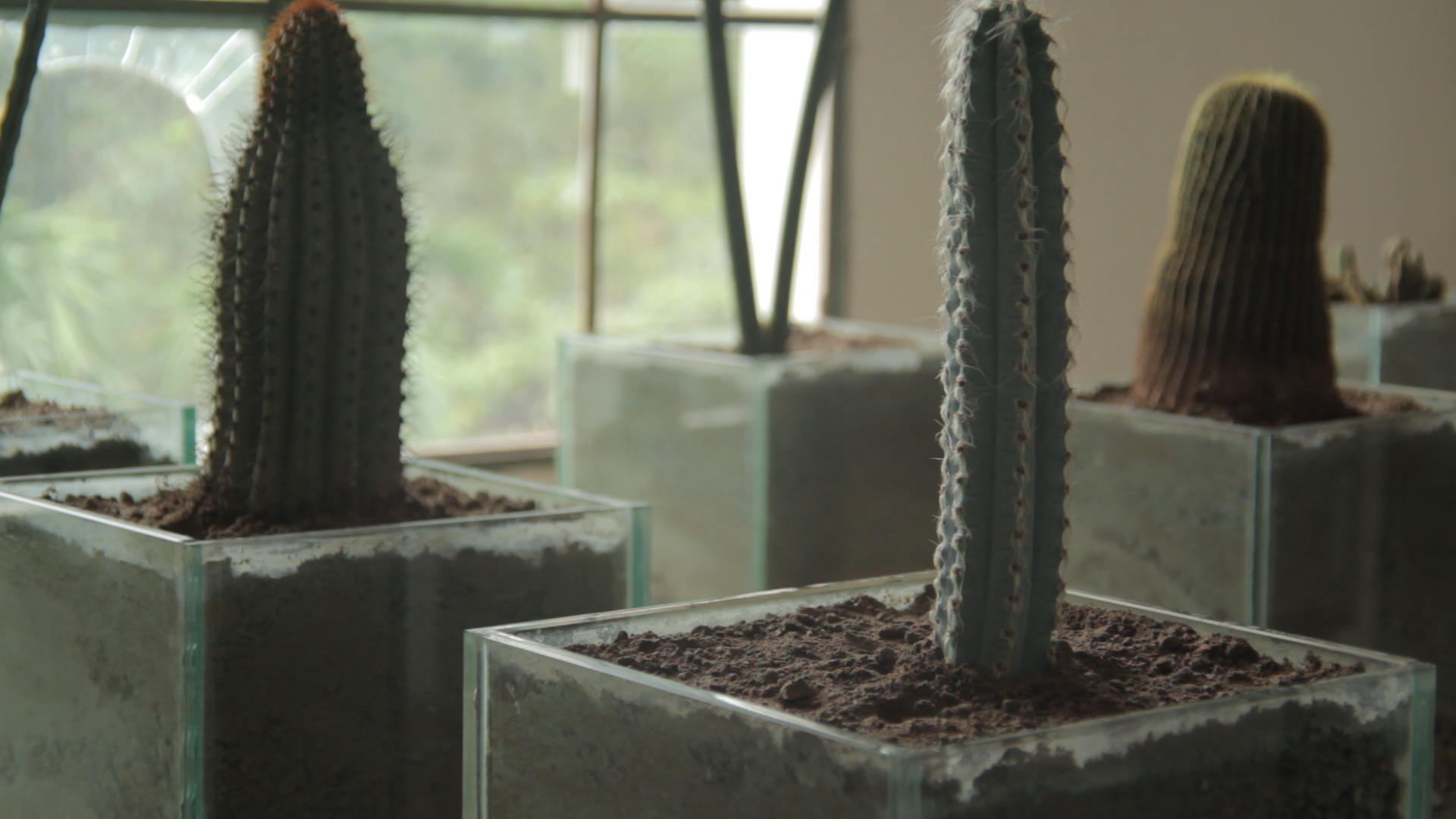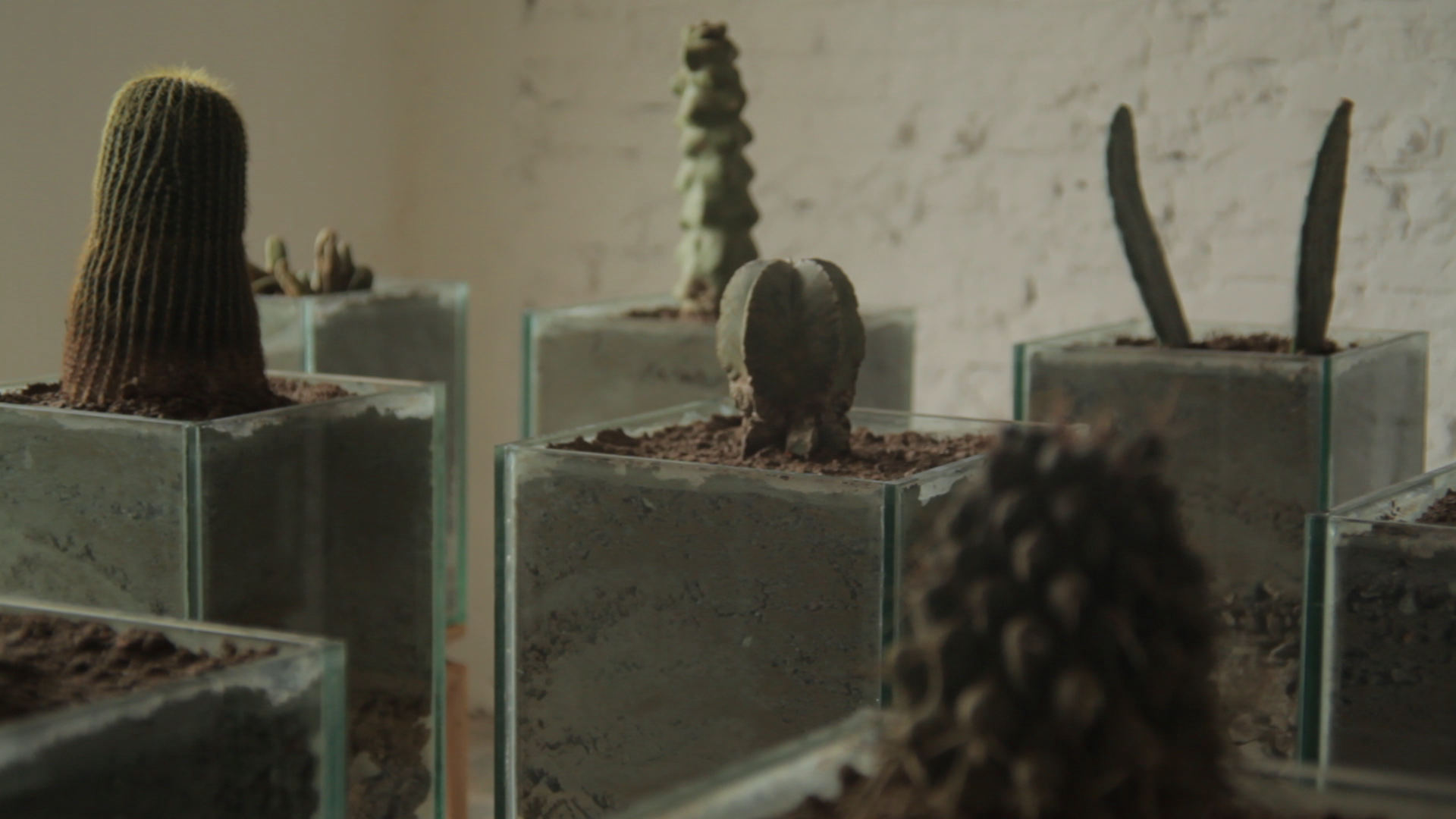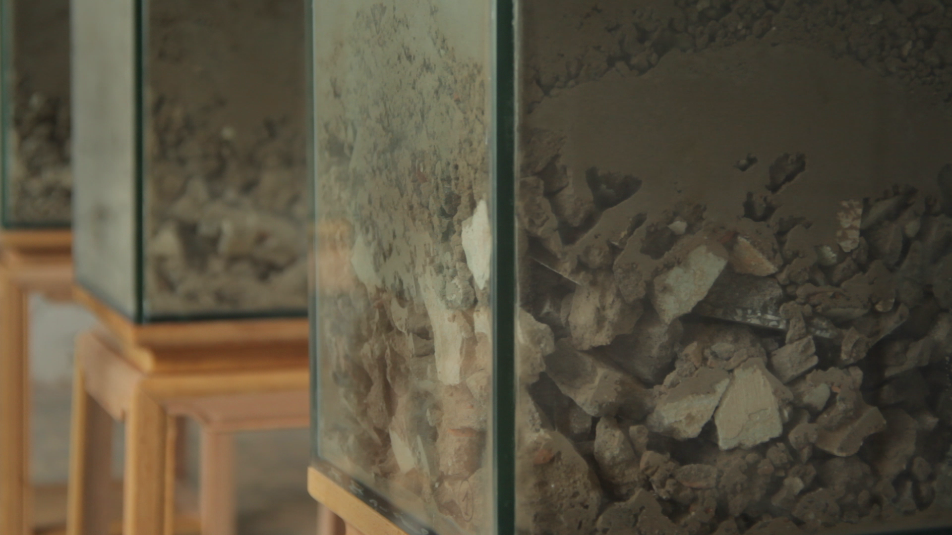 . Material: Wall mortar from Room 1; Glass from “Utopia”; Cactuses from Ba Vi National Park, Wooden pedestal from Dong Ky village.