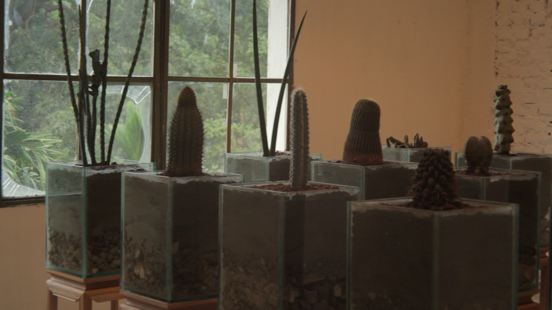 I invited an old friend to make the artwork with me, Mr. Kinh, manager of Ba Vi Cactus National Park. He was born in France in a Vietnamese family. He returned to Vietnam since he was a child, then joined the resistance army to fight against America and China. After the war, with the love for plants he moved to Ba Vi mountain to live and work ( he is also the manager of Bamboo and Pine National Park). He chose the most suitable cactuses to grow in boxes of humid wall mortar from Room 1 to display there.